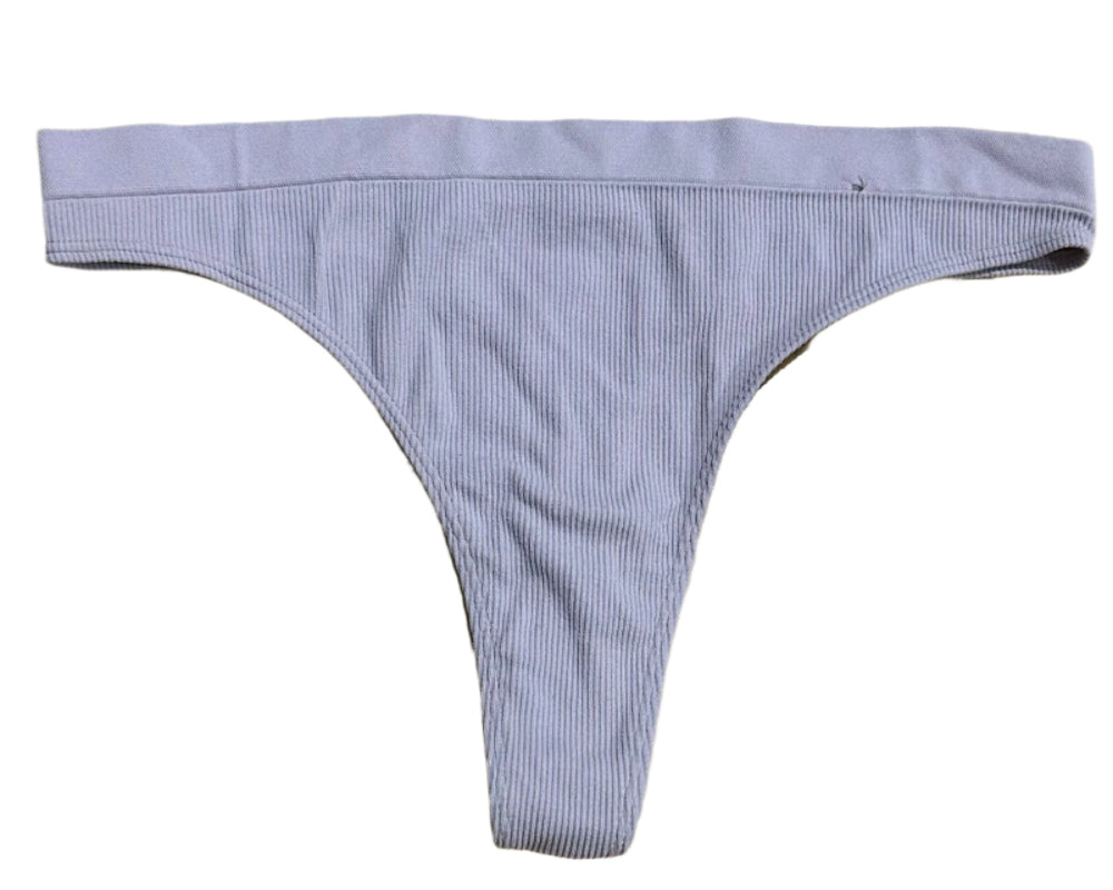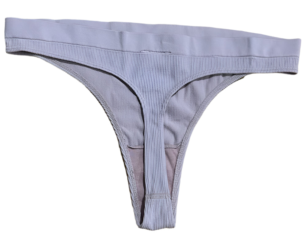 תחתון חוטיני בצבע סגול-לילך עדין. עשוי מבד ריב (ribbed) עם מרקם של פסים דקים אנכיים שנותן עם מראה מעט מחוספס ומעניין.